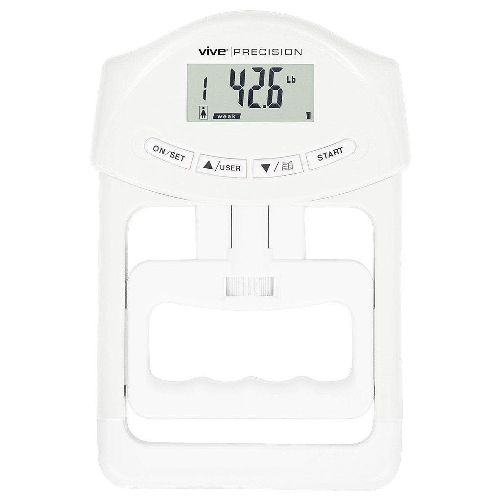 Perfect for athletic training, home and clinical use, the Vive Precision grip strength tester is equipped with a high-precision strain gauge sensor for accurately measuring grip strength up to 198 pounds. Testing grip strength is necessary for sports such as rock climbing, wrestling and gymnastics and also provides a valuable indicator of overall health.